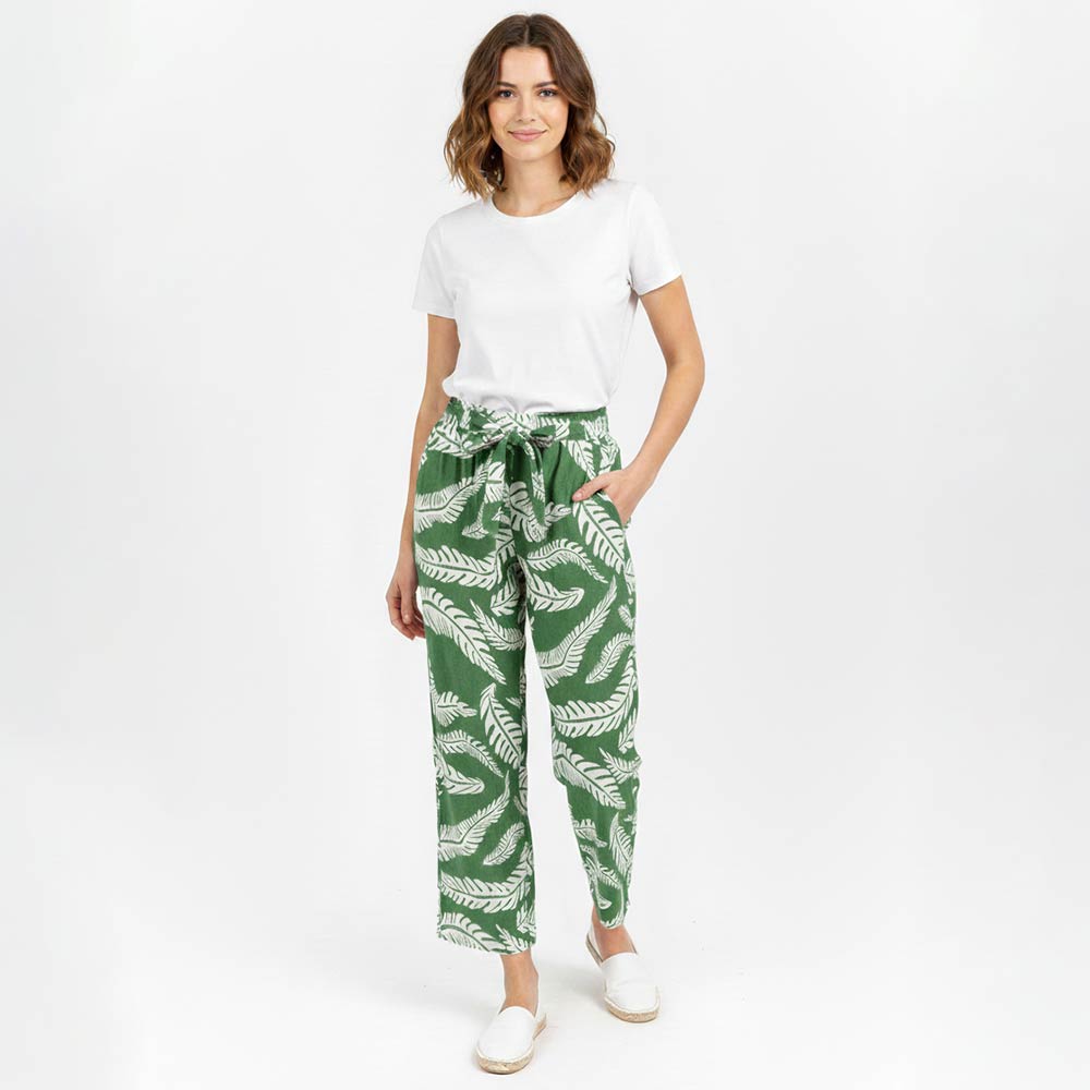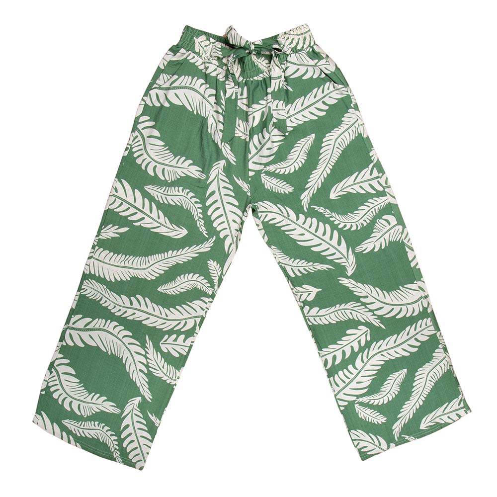 • Relaxed wide leg pants featuring an allover leaf-inspired print and a comfortable elastic waistband. Designed for easy pull-on wear, these flowy pants offer a flattering drape and effortless movement. Ideal for casual styling, travel outfits, or boutique assortments, they pair perfectly with simple tops and layered looks for versatile, everyday appeal.
