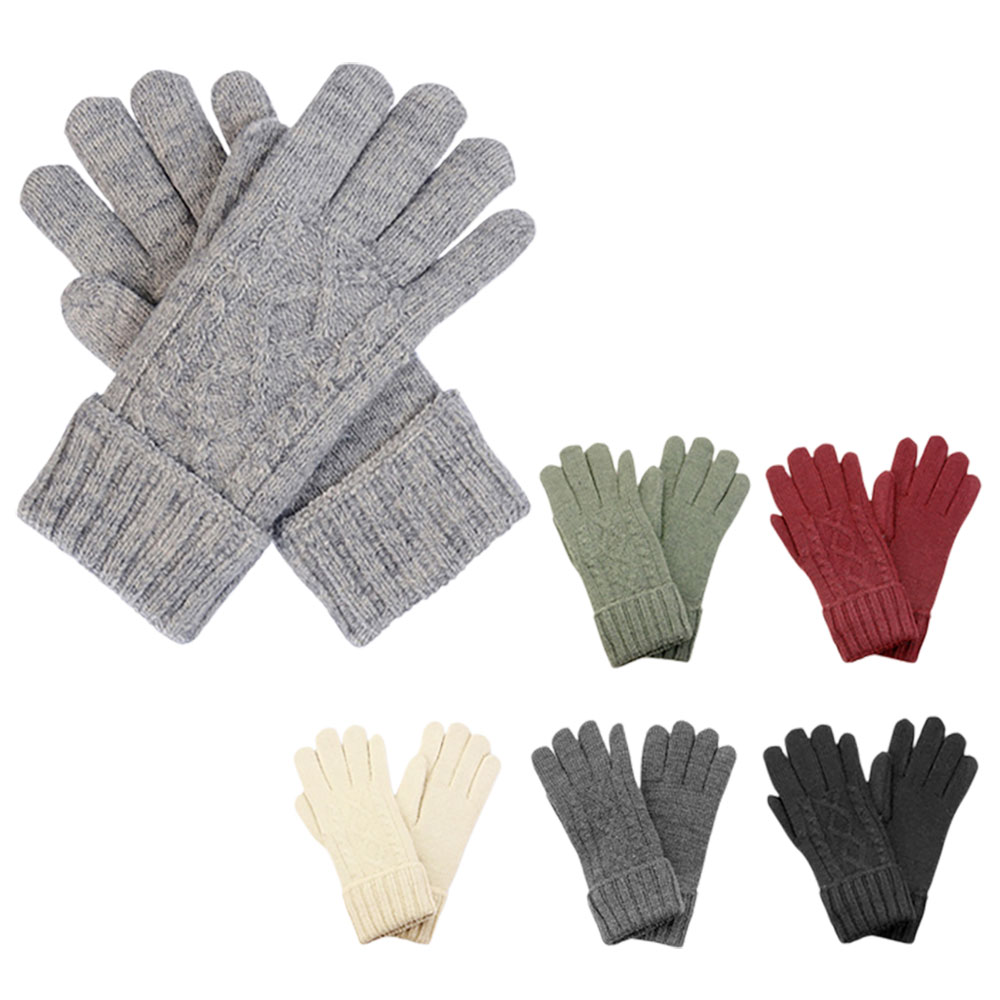12Pairs - Cable Knit Fleece Lining Winter Gloves