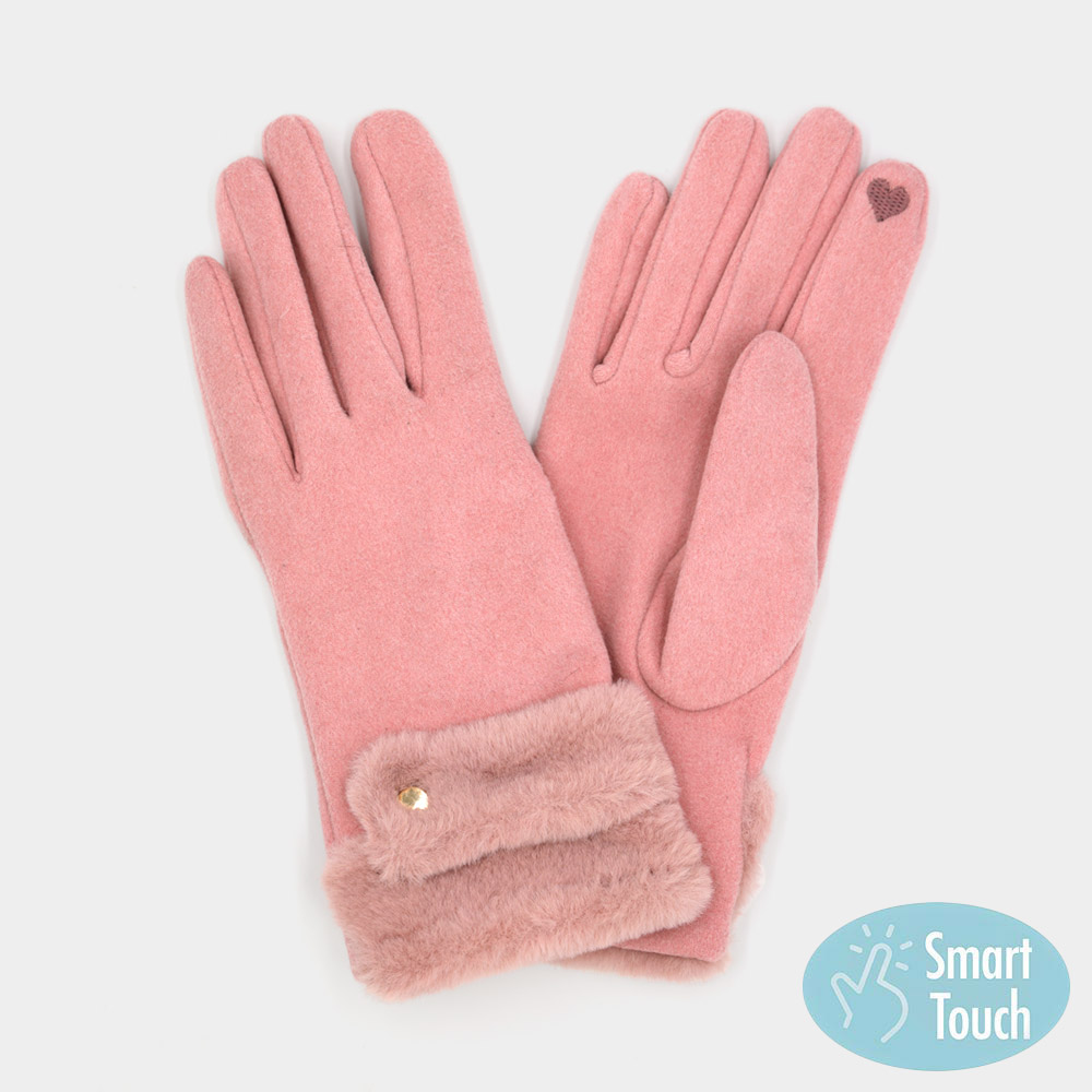 Double Faux Fur Cuff Fleece Smart Touch Gloves