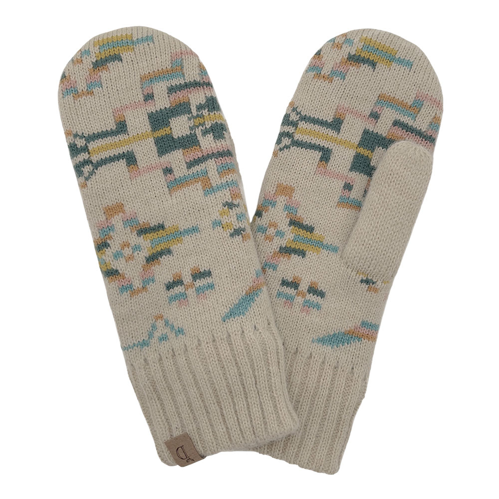 Ribbed Cuff Aztec Patterned Knit Winter Mittens Ribbed Cuff Aztec Patterned Knit Winter Mittens