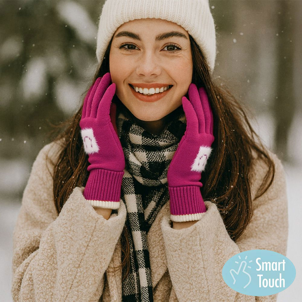• Cozy knit gloves with smart touch technology, featuring a playful face motif and contrast trim design. Perfect for keeping hands warm while allowing easy use of smartphones and tablets. A stylish and practical cold-weather accessory that combines fun detailing with everyday functionality.