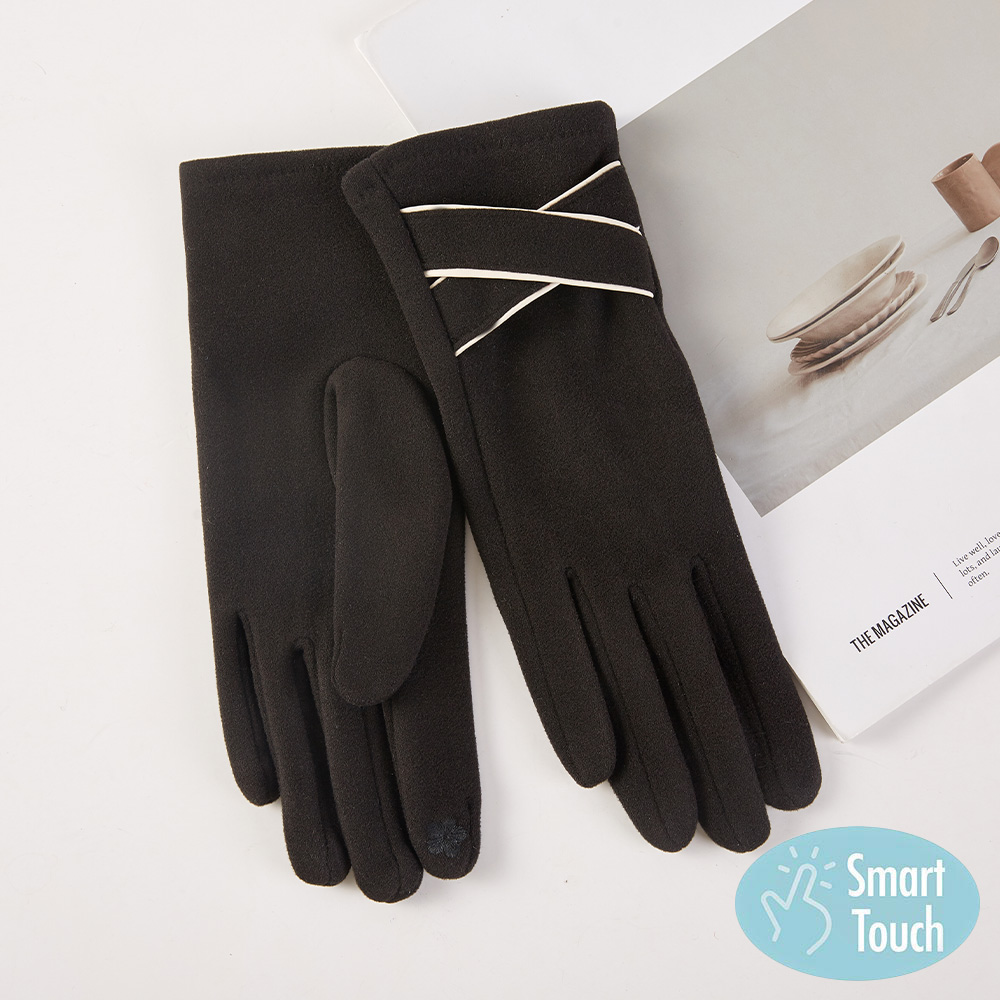 • Fashionable smart touch gloves featuring a chic crisscross accent for a modern look. Designed for warmth and convenience, these gloves allow easy use of touch screen devices while adding elegance to everyday and cold-weather outfits.