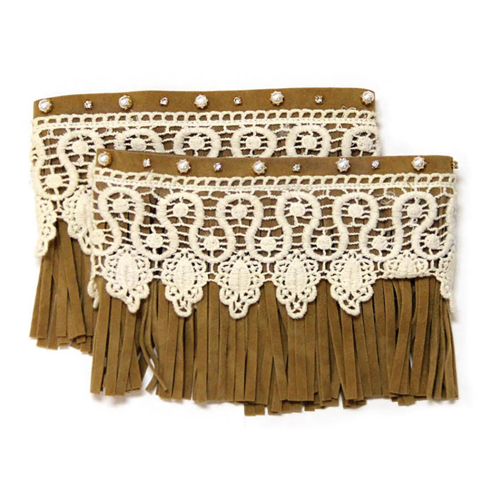 Details • Size : 18" X 4.5" • Velcro Strap Closure • These lace fringe boot cuff accessories bring a touch of boho-chic flair to any outfit. Featuring elegant lace detail and playful fringe, they slip easily over boots for an instant style upgrade. Perfect for adding texture and feminine charm to both casual and dressy seasonal looks.