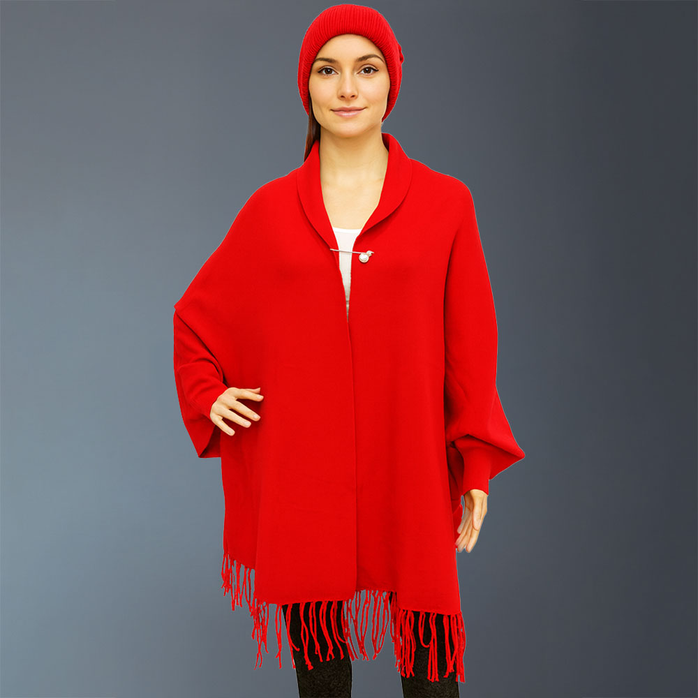 • Stylish shawl wrap featuring a draped open-front silhouette, and playful fringe trim. A versatile layering accessory that adds warmth and elegance to casual or dressy outfits, perfect for everyday wear.