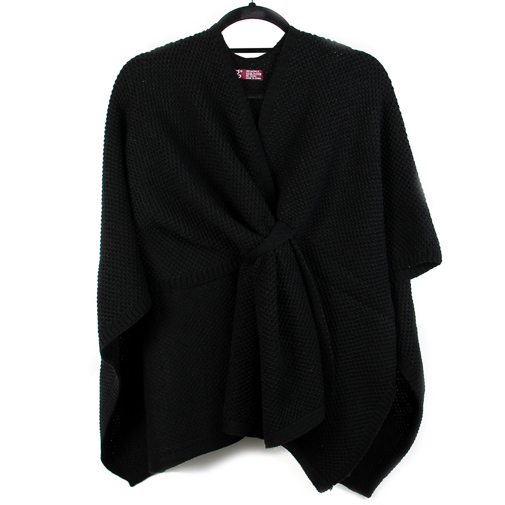 Front Tie Textured Knit Wrap Shawl Poncho Front Tie Textured Knit Wrap Shawl Poncho