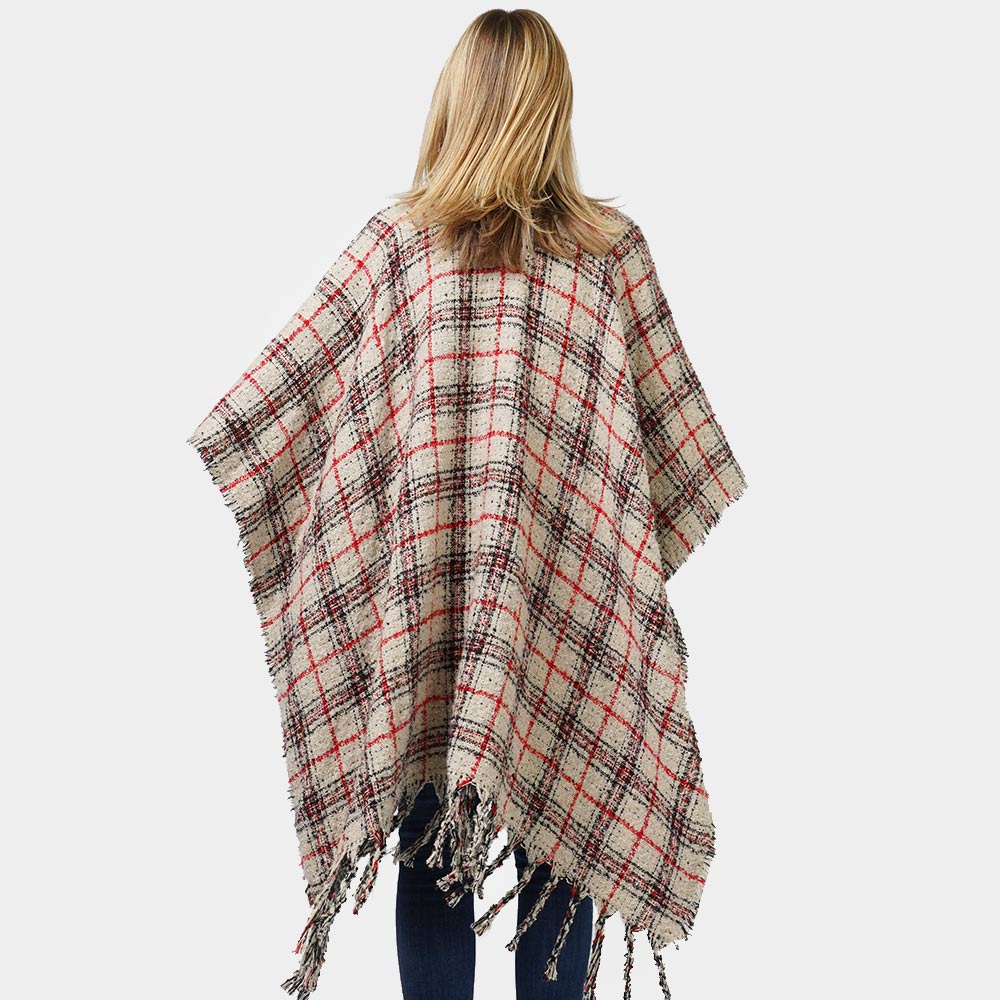 Reversible Plaid Check Patterned Cape Poncho