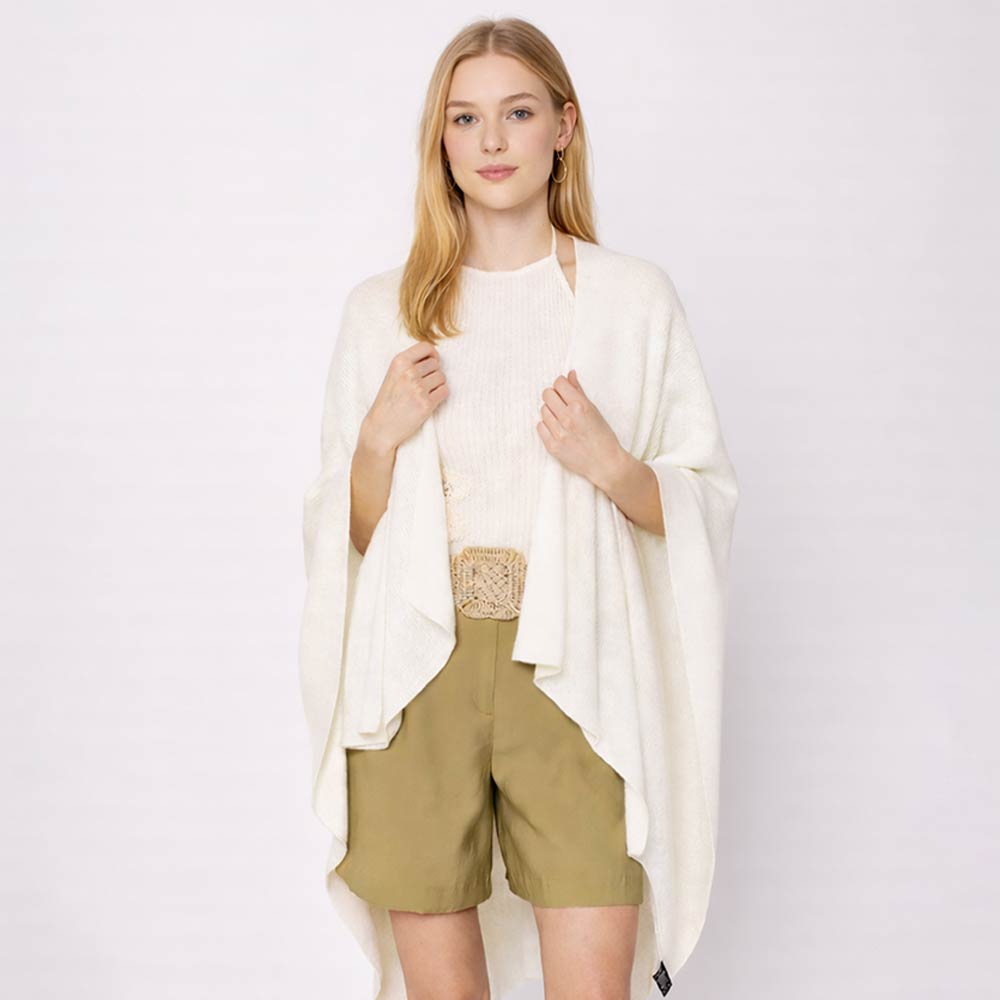 • Stylish asymmetrical poncho wrap featuring a feminine side bow and soft, cozy fabric. Perfect for layering in cool weather, this versatile piece adds warmth and elegance to any outfit—ideal for casual wear, office looks, or chic seasonal transitions.