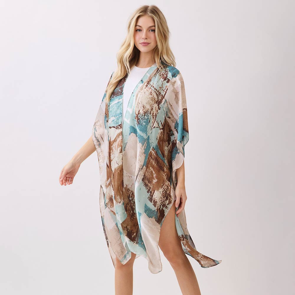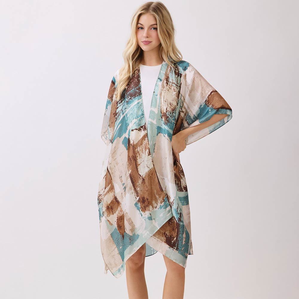 Abstract Modern Art Inspired Print Silky Feel Kimono Poncho