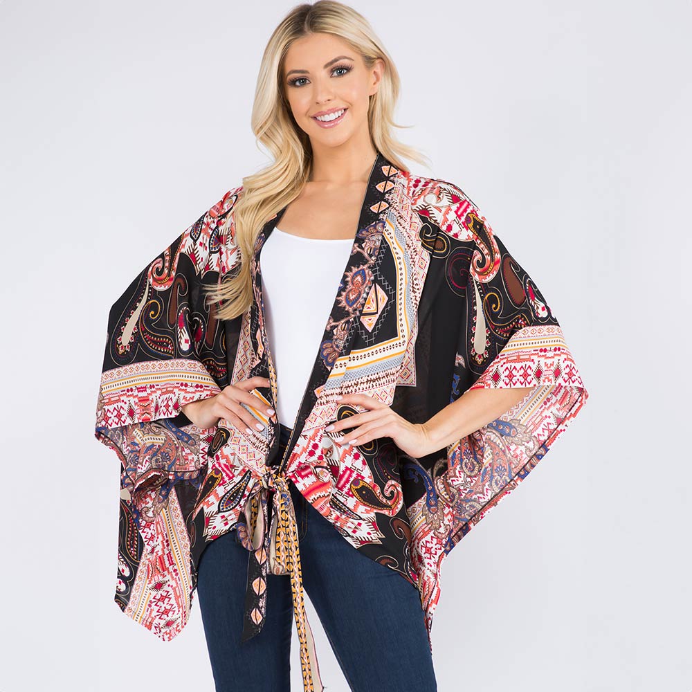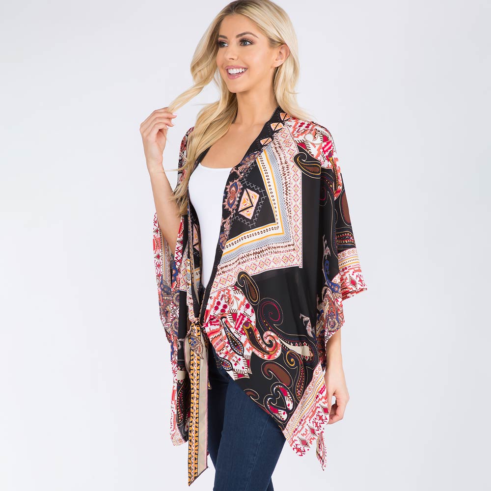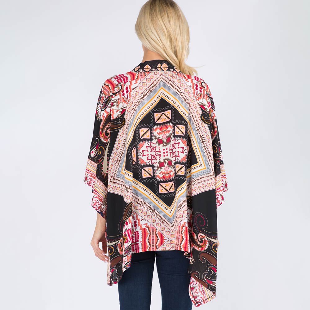 Lightweight Boho Paisley Pattern Open Front Kimono Poncho
