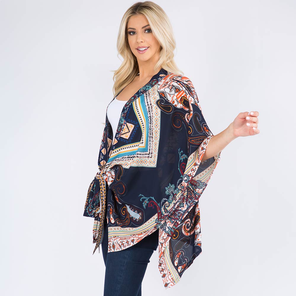 • Statement kimono wrap featuring a bold patchwork-inspired design and adjustable tie-front detail. Designed for effortless layering with a relaxed silhouette that elevates everyday outfits, travel looks, and boutique styling. Ideal as a versatile outer layer for casual wear, festivals, or resort-ready collections.
