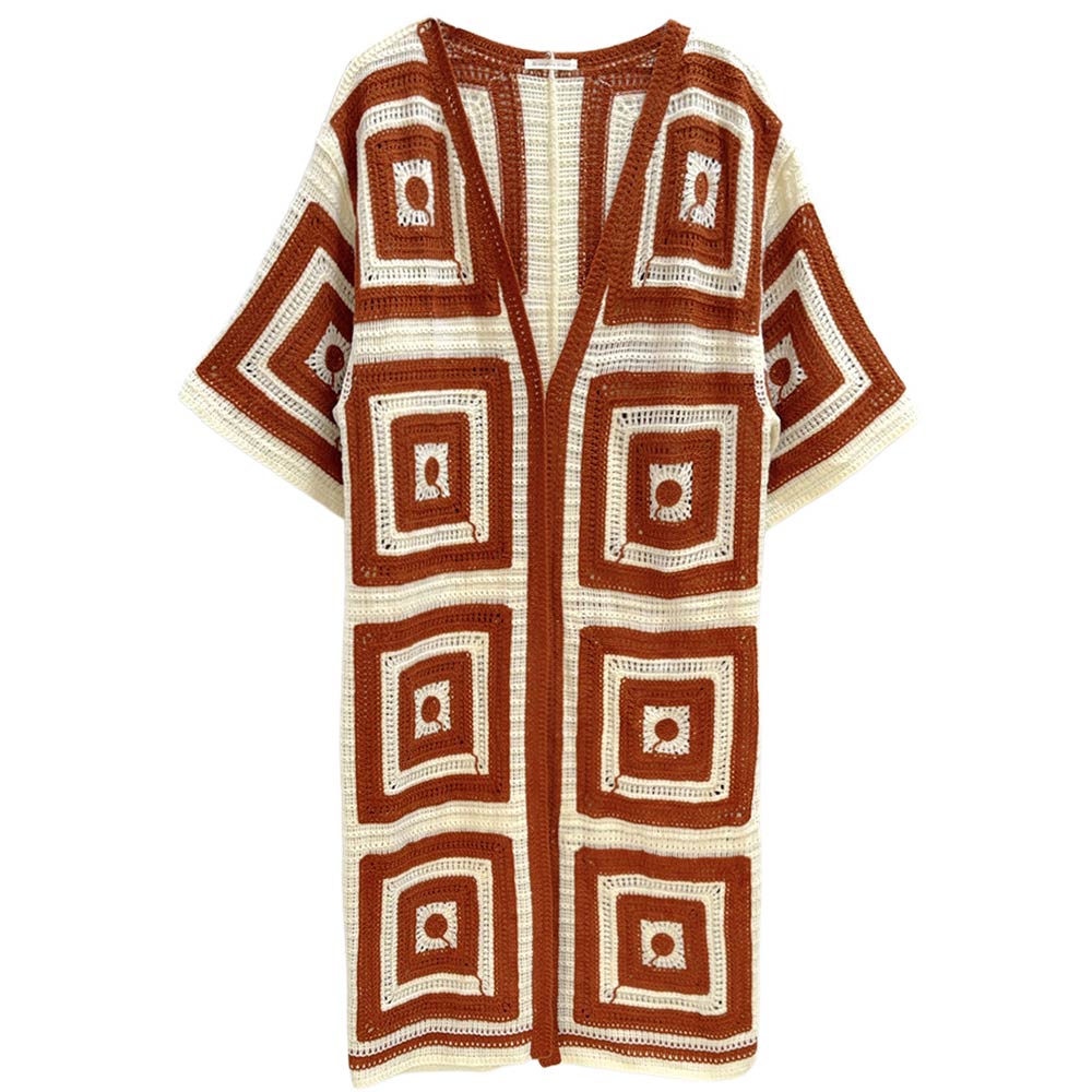 Geometric Square Pattern Crochet Long Cardigan Geometric Square Pattern Crochet Long Cardigan