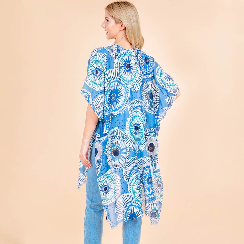 • Relaxed open front kimono wrap designed with an eye catching printed pattern and flowy silhouette. Easy to layer over tanks, tees, or dresses, it adds light coverage, movement, and a polished touch to everyday outfits, travel looks, or casual occasions.