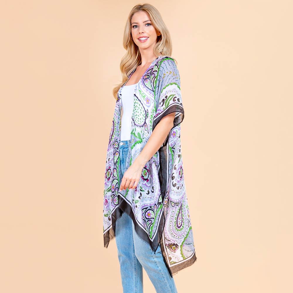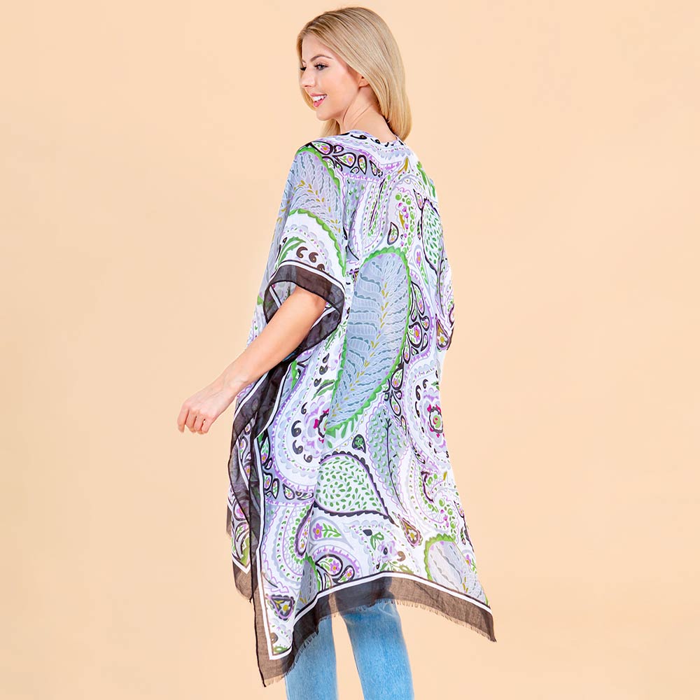 Lightweight Paisley Pattern Open Front Kimono Poncho