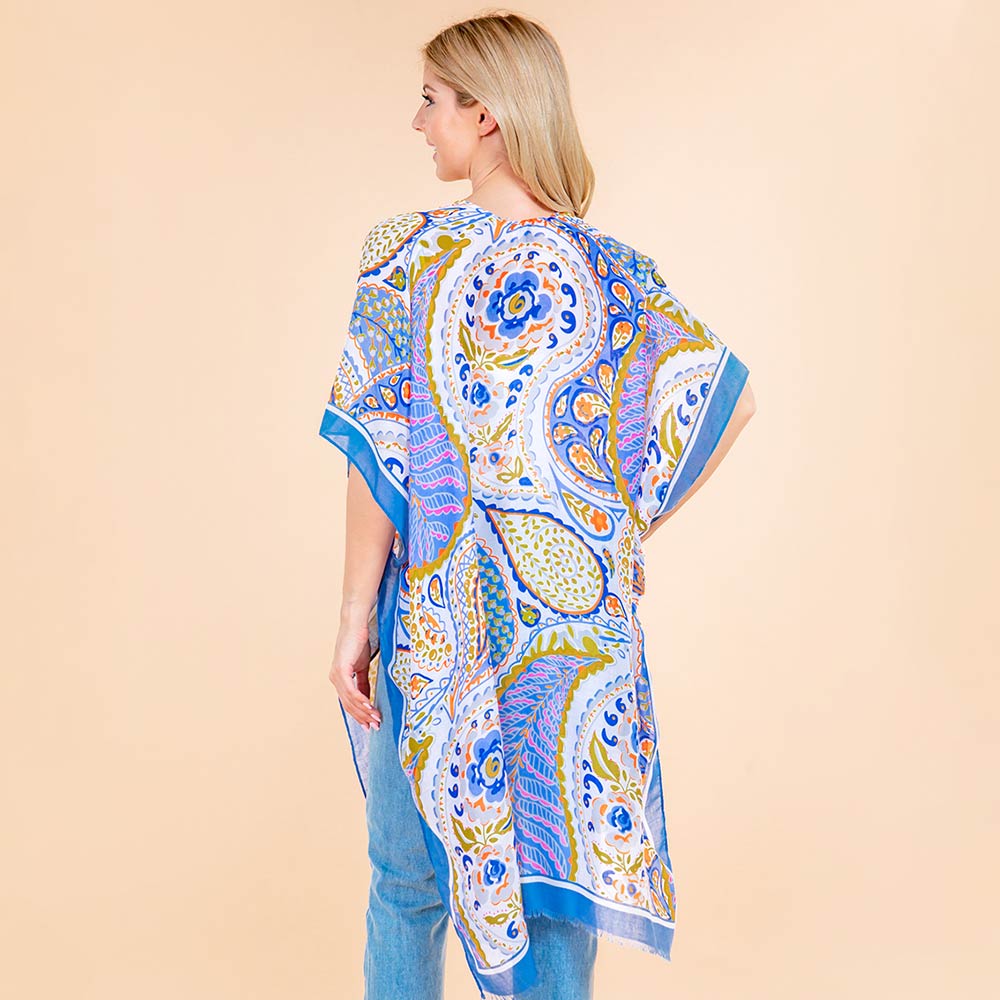 Lightweight Paisley Pattern Open Front Kimono Poncho