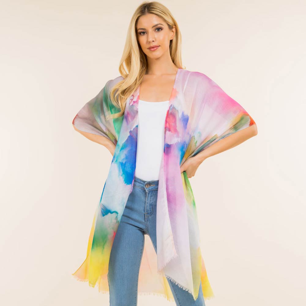 • Flowy open front kimono wrap designed for effortless layering and everyday versatility. Features a soft drape and relaxed silhouette that elevates casual outfits or complements dresses. Ideal for travel, work, or weekend wear, adding movement and a polished finishing touch.