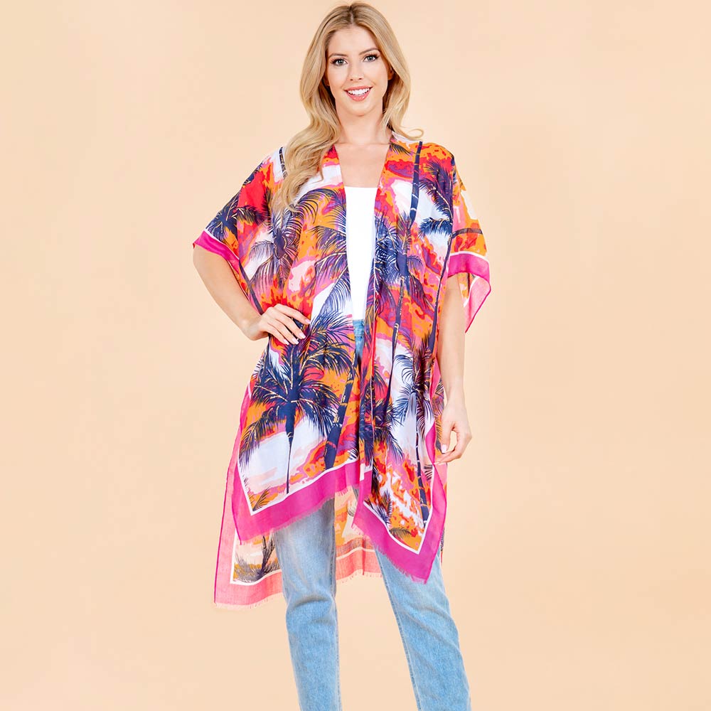 Palm Tree Leaf Pattern Open Front Kimono Poncho Wrap Palm Tree Leaf Pattern Open Front Kimono Poncho Wrap Palm Tree Leaf Pattern Open Front Kimono Poncho Wrap