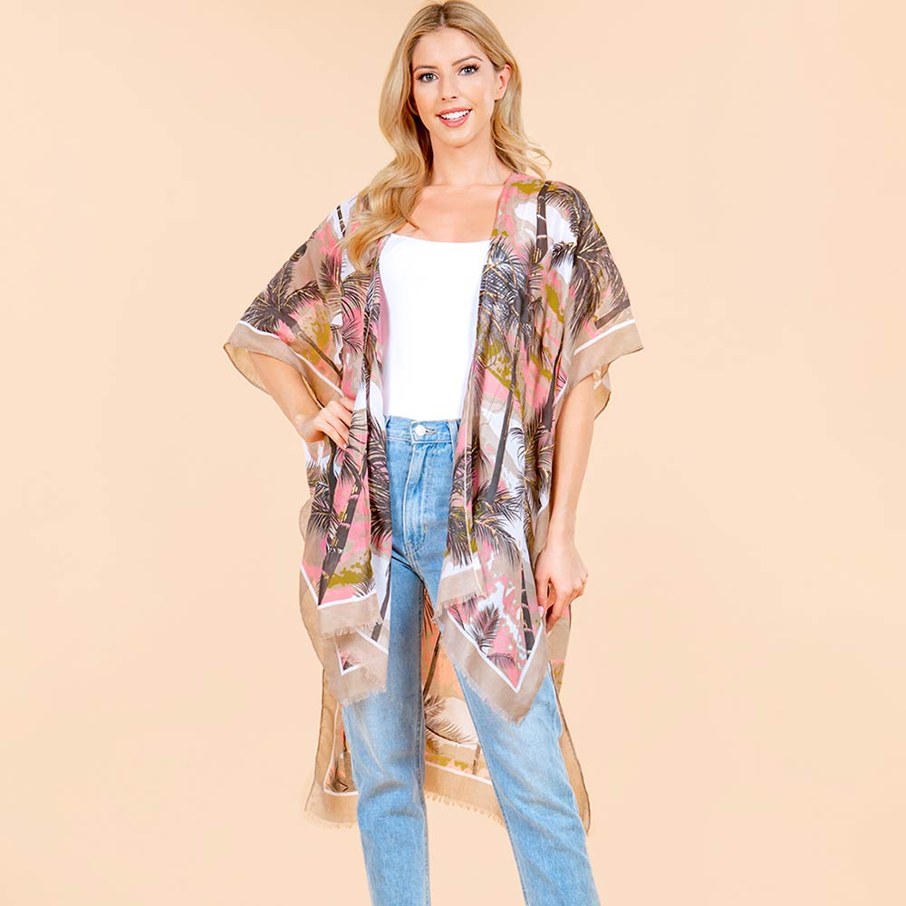 Palm Tree Leaf Pattern Open Front Kimono Poncho Wrap Palm Tree Leaf Pattern Open Front Kimono Poncho Wrap Palm Tree Leaf Pattern Open Front Kimono Poncho Wrap