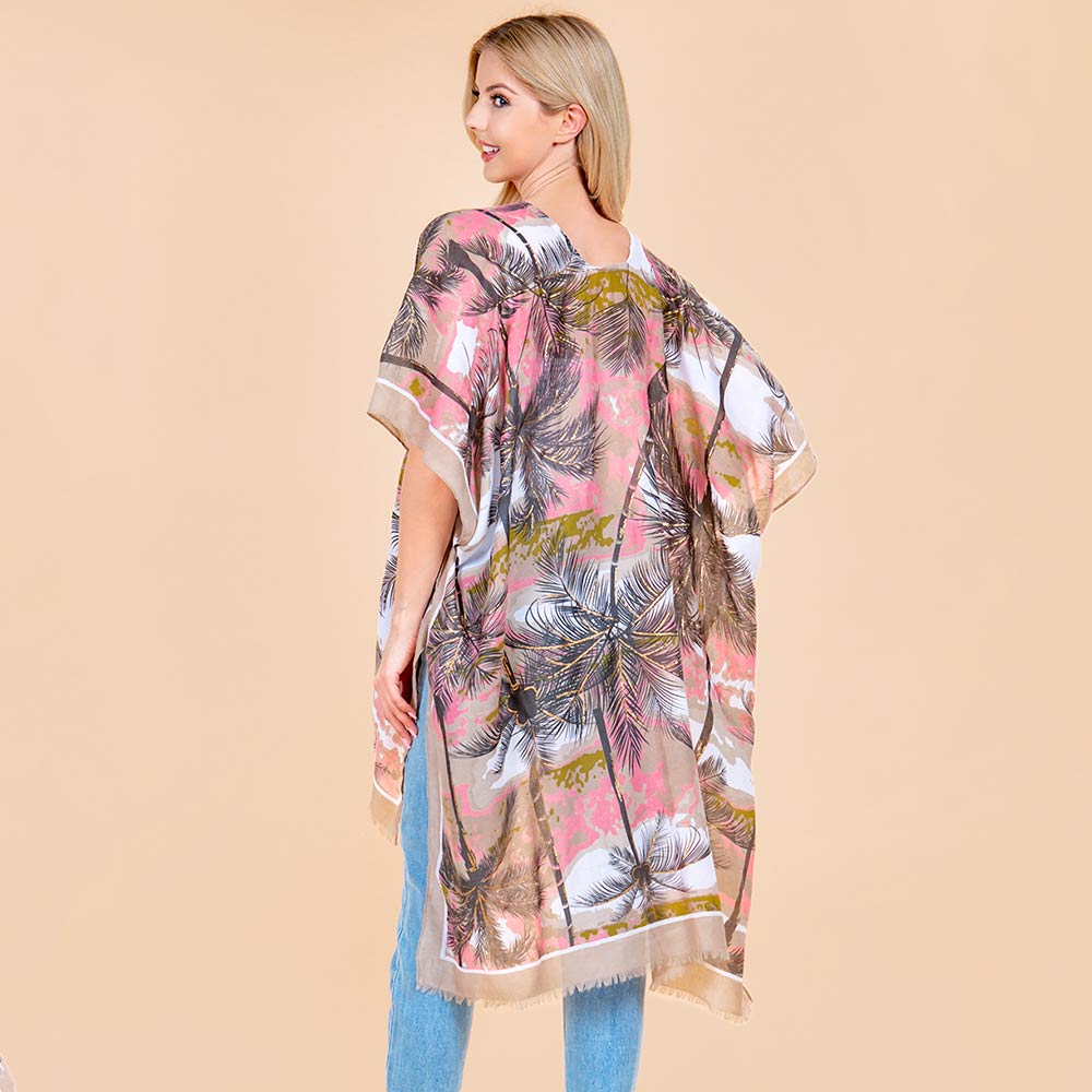 Palm Tree Leaf Pattern Open Front Kimono Poncho Wrap