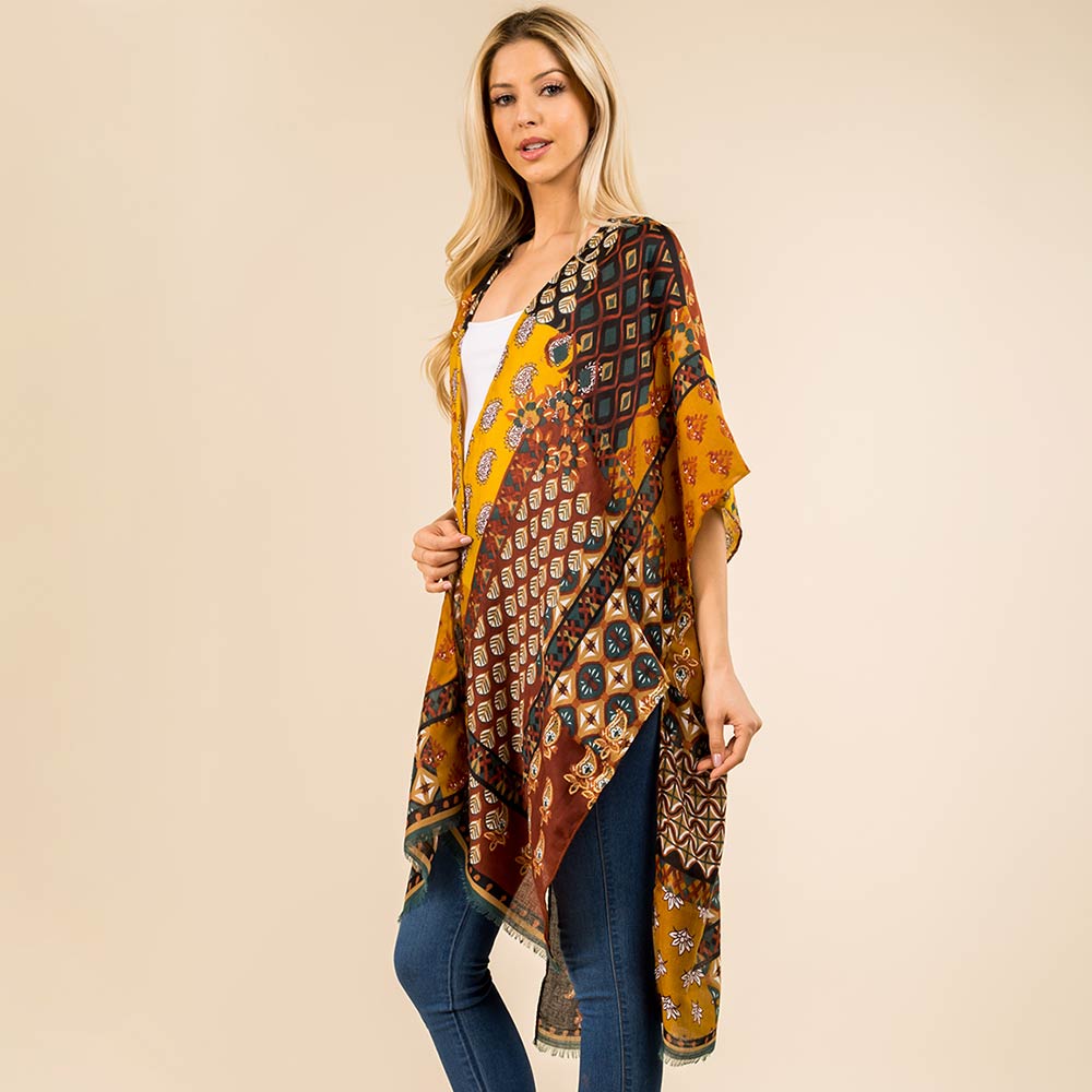 • Flowy open front kimono wrap designed with a relaxed silhouette and detailed printed pattern for effortless layering. Easy to style over tanks, tees, or dresses, it adds light coverage, graceful movement, and a polished finishing touch to everyday outfits, travel looks, or casual occasions.