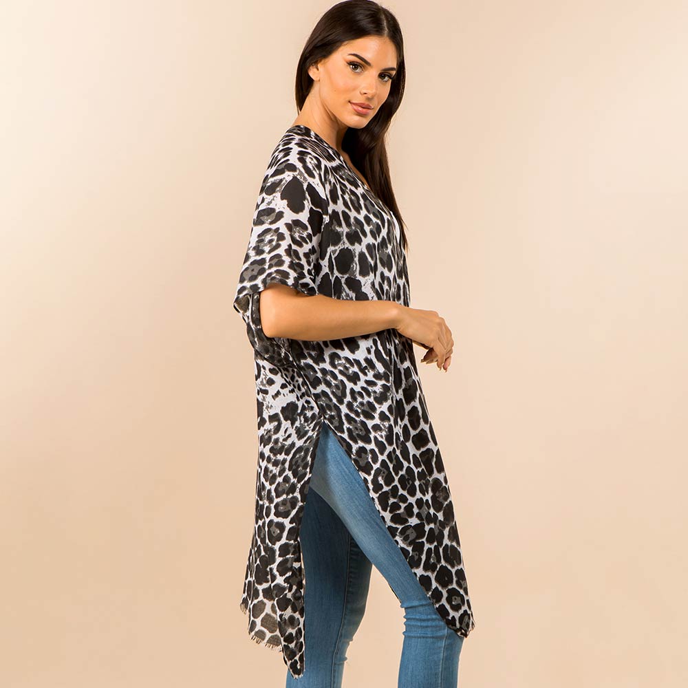 • Flowy open front kimono wrap designed with a bold animal inspired pattern and relaxed silhouette. Easy to layer over tanks, tees, or dresses, it adds light coverage, movement, and a confident finishing touch to everyday outfits, travel looks, or casual occasions.