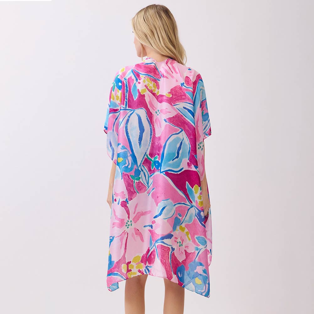Vibrant Botanical Floral Print Silky Feel Kimono Poncho