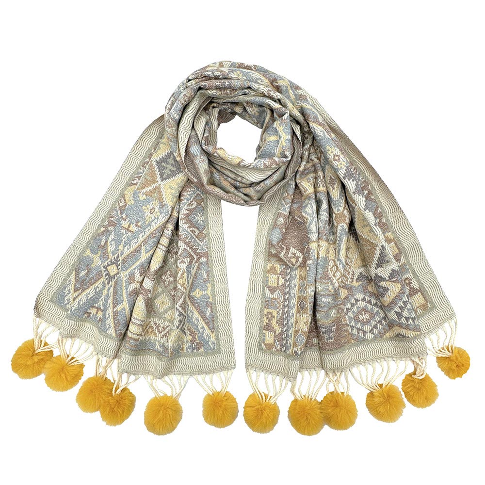 Elegant Patterned Pom Tassel Accent Winter Scarf