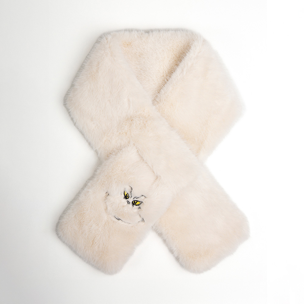 Faux Fur Plush Cherry Embroidered Pull Through Scarf
