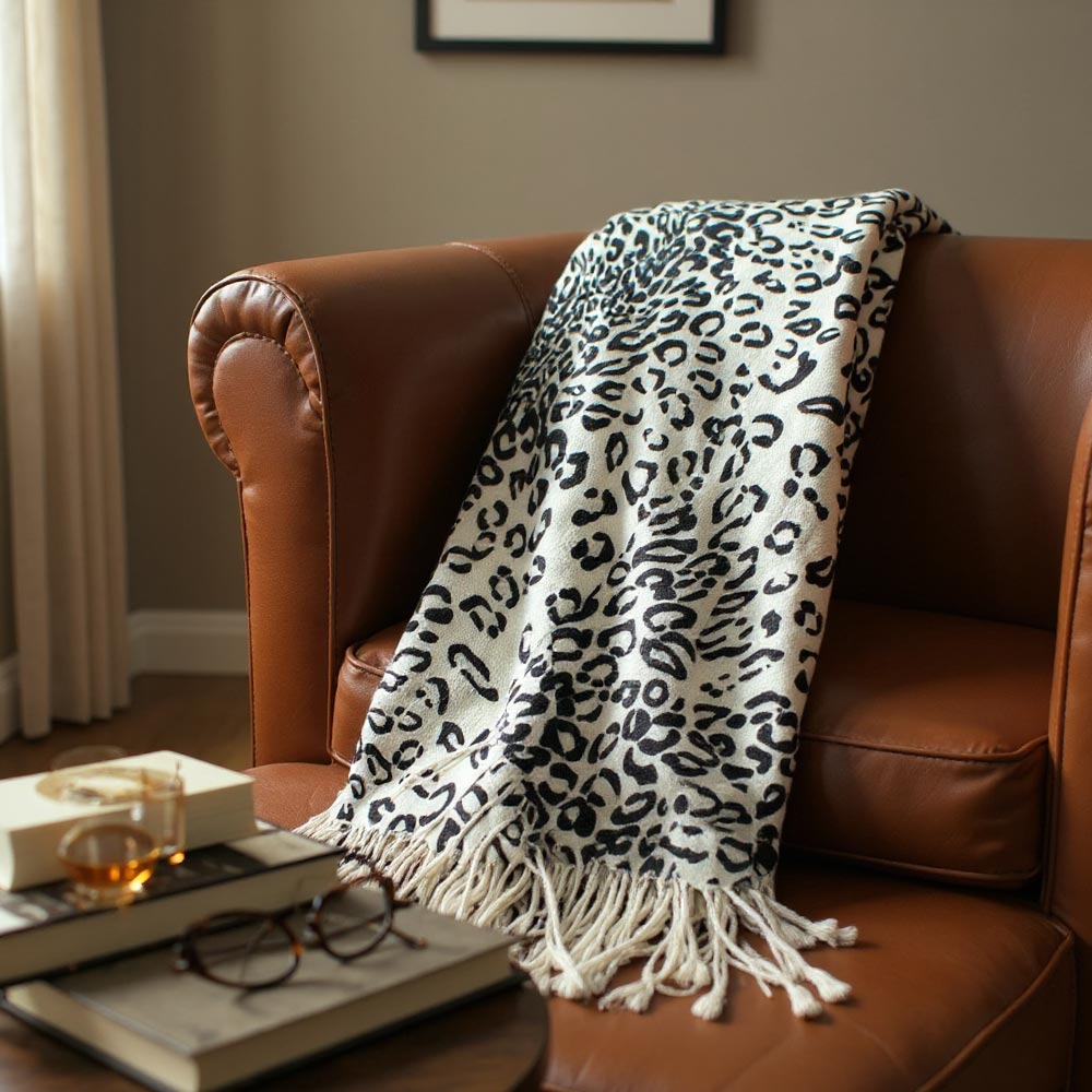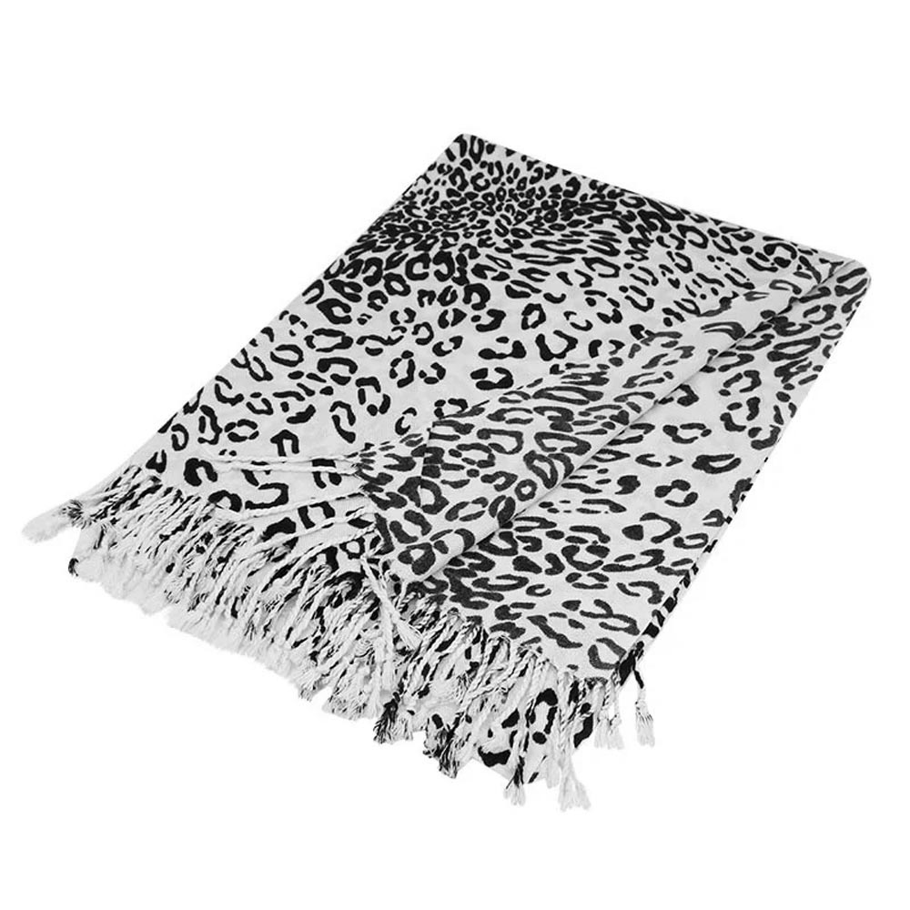 • Leopard print fringed scarf designed for versatile styling and comfort. Lightweight yet cozy, this animal print wrap adds a bold accent to casual or dressy looks, perfect for layering in any season. Finished with tassel edges for added texture and effortless chic appeal.