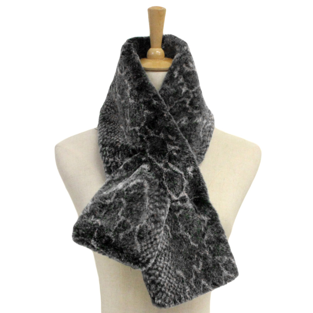 Snake Skin Patterned Faux Fur Pull Through Scarf