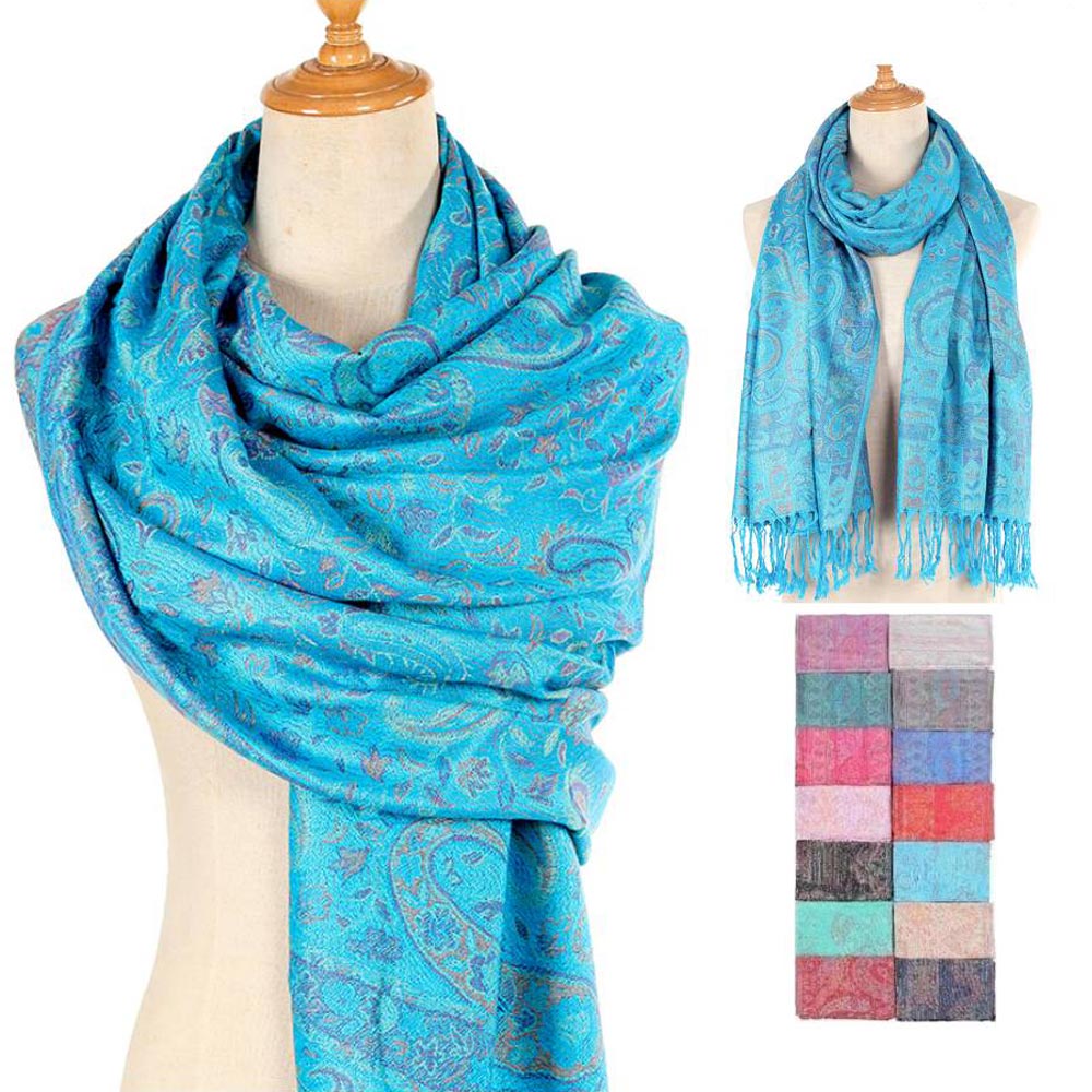Details • Size : 28" X 78" • Material : 100% Pashmina • Stylish paisley scarf with fringed edges, designed in assorted styles for versatile wear. Perfect as a wrap, shawl, or lightweight cover-up, it adds elegance to both casual and formal outfits. Timeless and practical, this accessory is ideal for year-round layering and effortless fashion.