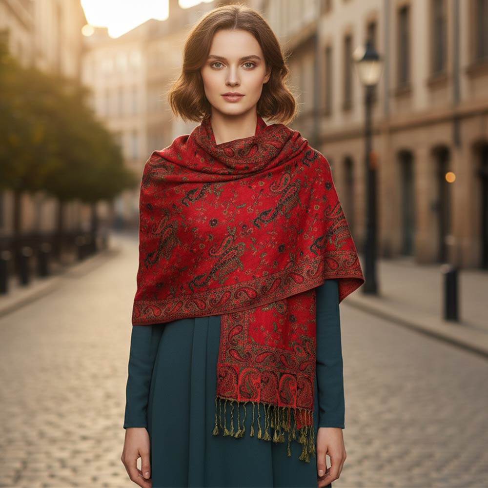 • Versatile paisley wrap scarf designed with an elegant fringe finish for timeless styling. Ideal for layering over casual or dressy outfits, adding texture and visual interest. Perfect for everyday wear, seasonal transitions, travel looks, and gifting.