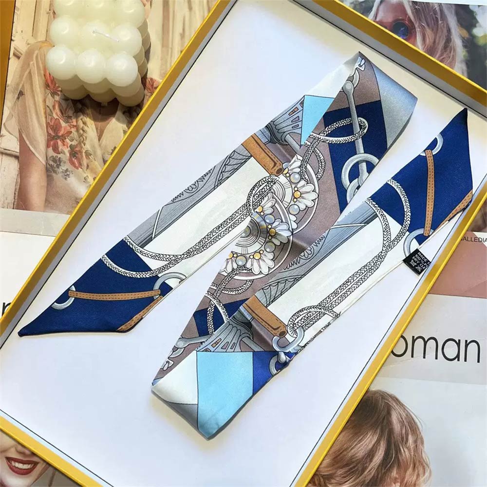 • Elegant twilly scarf featuring a refined chain-inspired pattern designed for versatile styling. Ideal for wrapping on handbags, tying around the neck, wrist, ponytail, or hat for a chic accent. A timeless fashion accessory that elevates everyday outfits, travel looks, and polished ensembles with effortless style.
