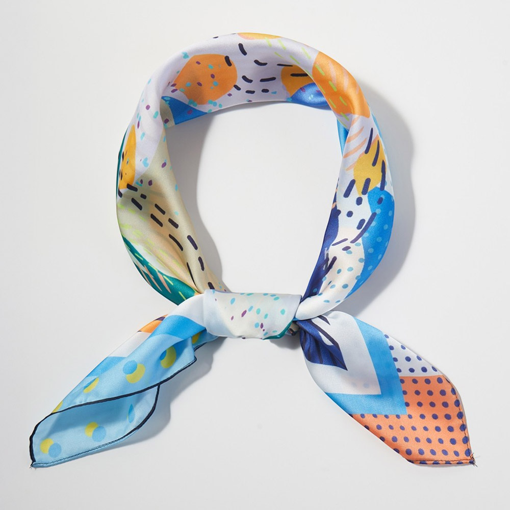 Details • Size : 27.5" X 27.5" • Material : 100% Polyester • Square fashion scarf featuring an expressive abstract art design with dynamic shapes and flowing patterns. Designed for versatile styling as a neck scarf, hair accessory, or bag accent, making it ideal for boutiques seeking modern statement accessories with everyday wear appeal and seasonal flexibility.