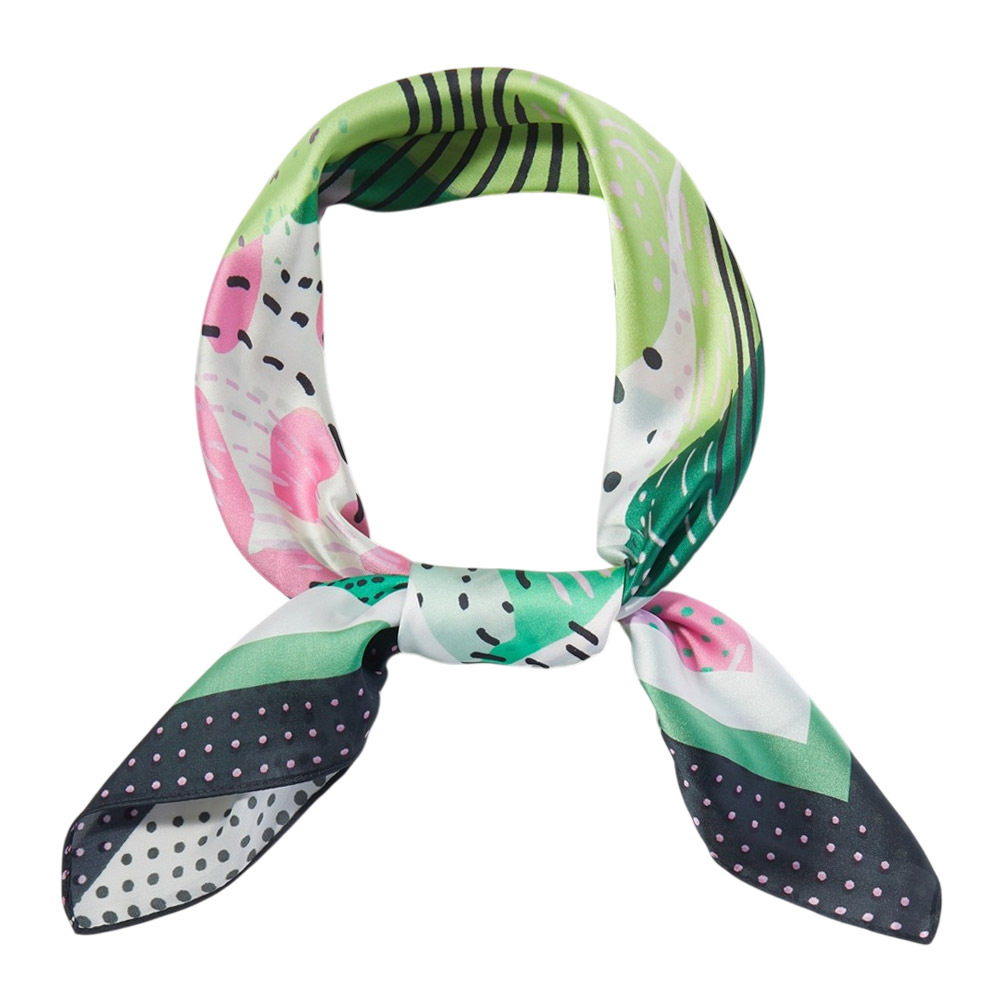• Square fashion scarf featuring an expressive abstract art design with dynamic shapes and flowing patterns. Designed for versatile styling as a neck scarf, hair accessory, or bag accent, making it ideal for boutiques seeking modern statement accessories with everyday wear appeal and seasonal flexibility.