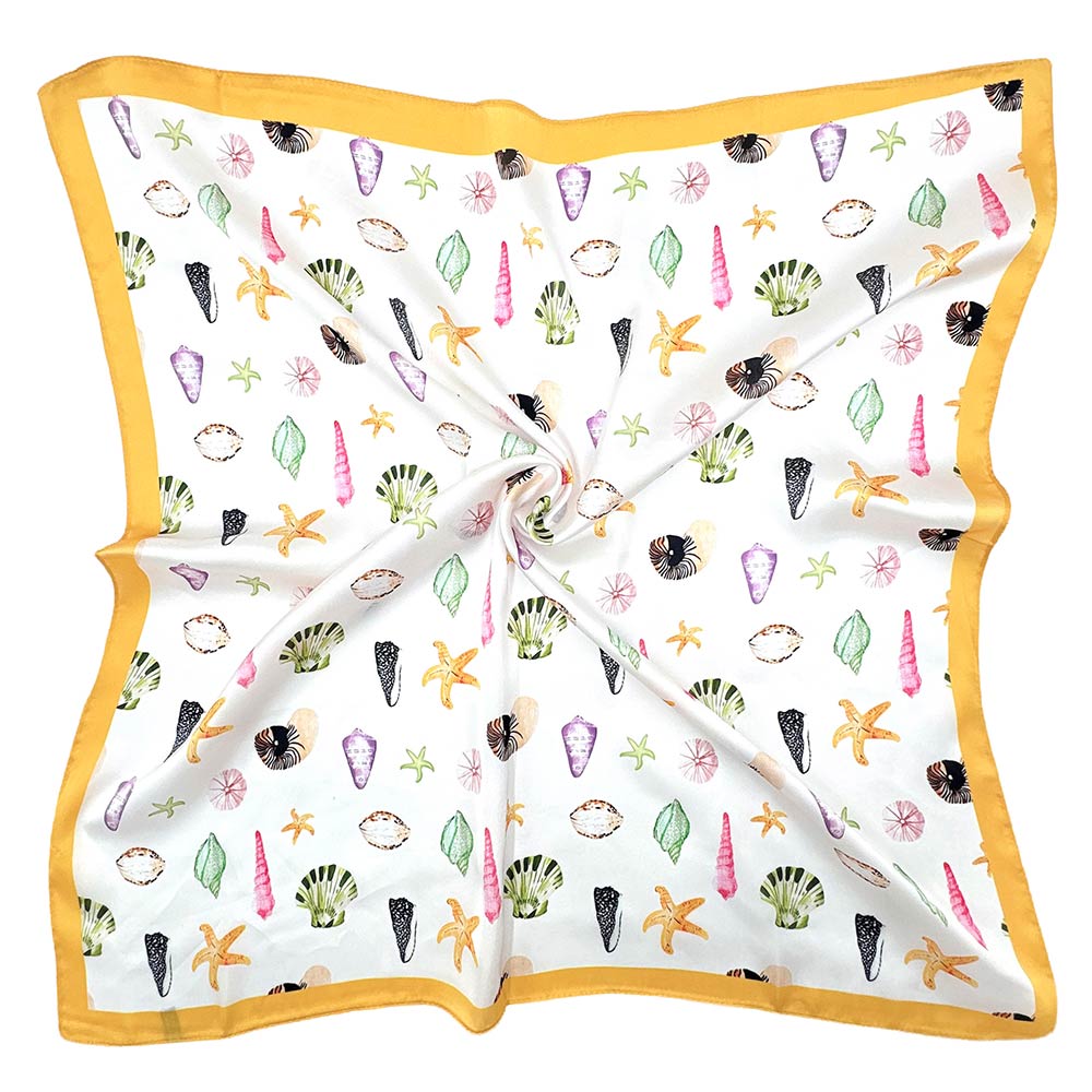 Details • Size : 27.6" X 27.6" • Material : 100% Polyester • This square fashion scarf features a playful sea life pattern with starfish, shells, and ocean-inspired motifs for a fresh, coastal feel. Designed for versatile styling around the neck, hair, or handbag, it adds personality to casual and resort looks. Ideal for seasonal collections, beach boutiques, gifts, and everyday accessorizing with a fun, nature-inspired touch.