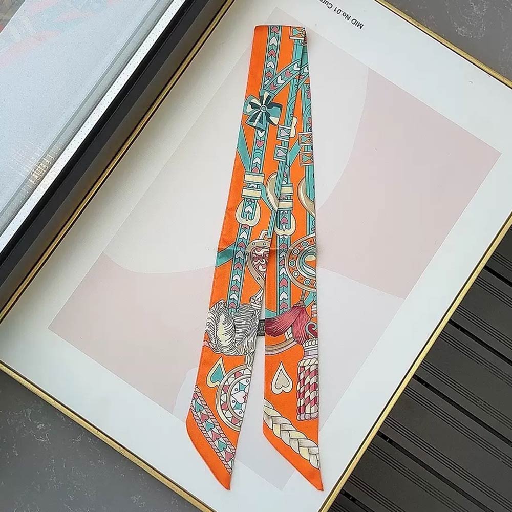 • Elegant skinny scarf featuring a detailed chain-inspired motif with a refined twilly silhouette. Designed for versatile styling around the neck, wrist, hair, or handbag handle. Lightweight and easy to wear, it’s ideal for everyday outfits, travel styling, gifting, and adding a polished, fashion-forward accent to any look.