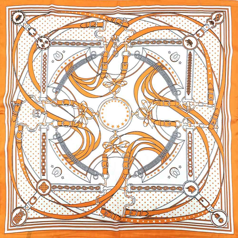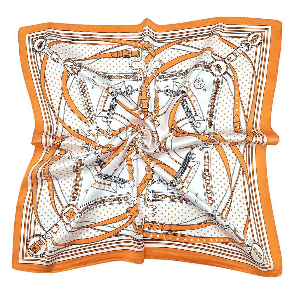 Details • Size : 27.6" X 27.6" • Material : 100% Polyester • This square fashion scarf features an elegant equestrian harness and strap motif arranged in a balanced, symmetrical layout with refined detailing and decorative accents. Designed to elevate everyday styling, it can be worn around the neck, styled in the hair, tied on a handbag, or used as a statement accessory. A strong choice for boutiques seeking classic-inspired scarves with timeless appeal, eye-catching pattern work, and versatile wearability for casual or polished looks.