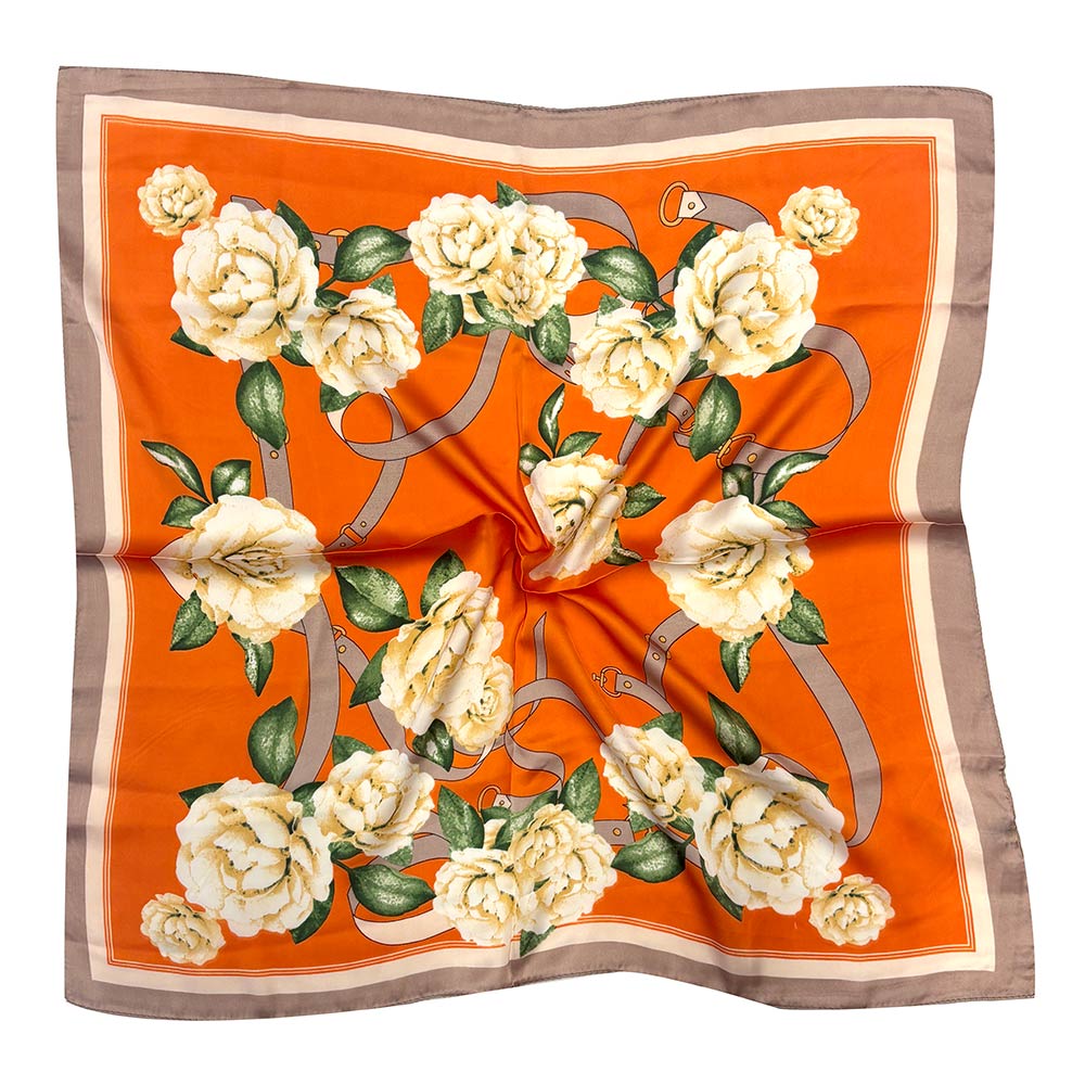 Floral Ribbon Printed Square Silky Satin Bandana Scarf