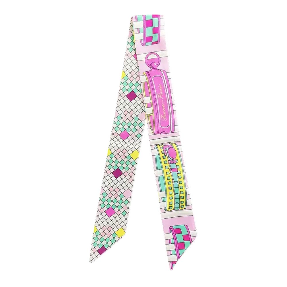 • Geometric skinny scarf designed for versatile styling on hair, handbags, ponytails, or wrists. The slim silhouette adds a polished accent to everyday outfits, travel looks, and boutique displays, making it an easy-to-style accessory for layering, gifting, and trend-forward collections.