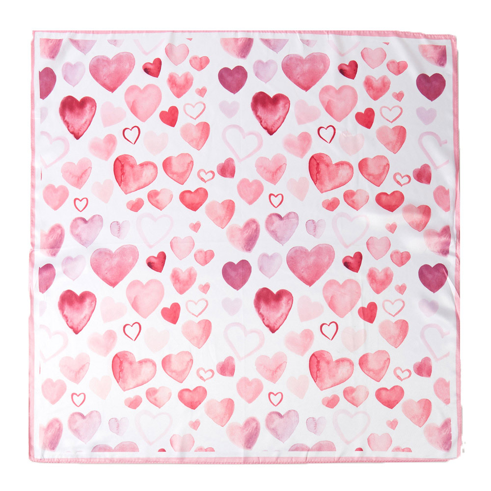 Heart Pattern Printed Square Silky Satin Bandana Scarf