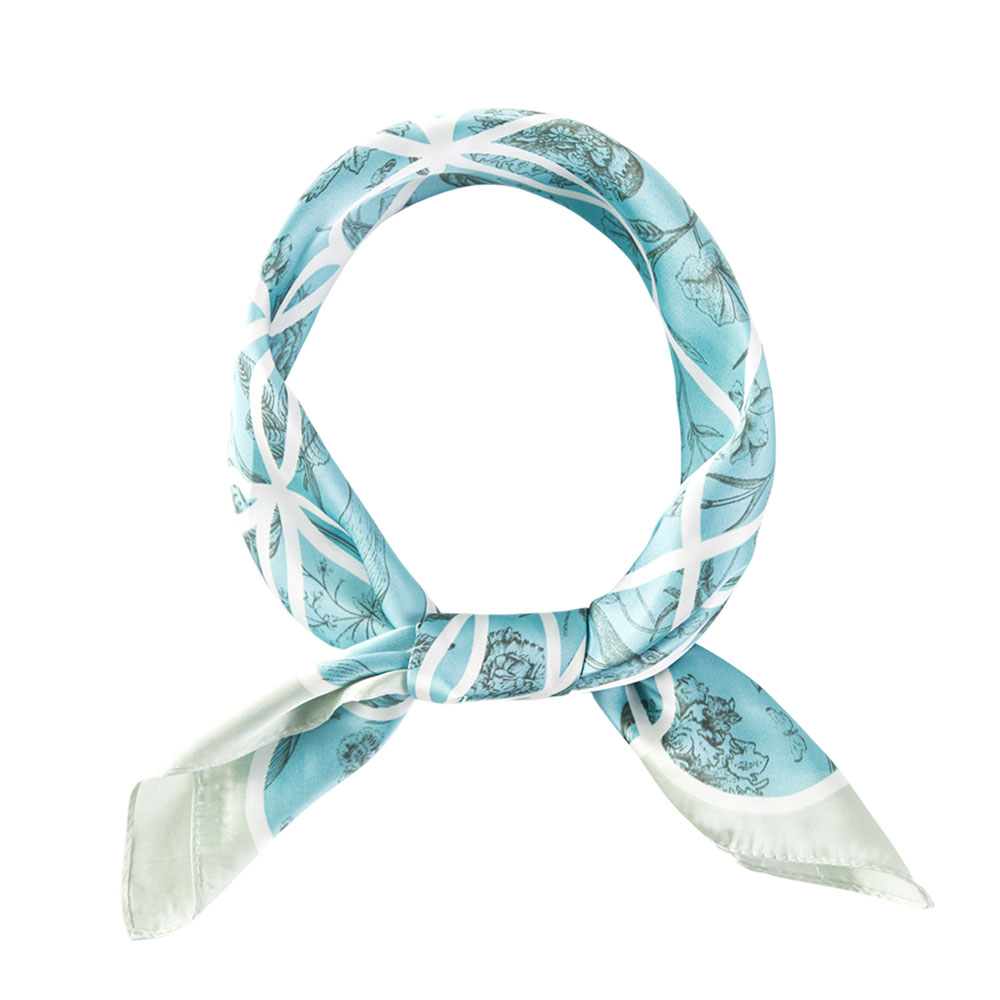 Details • Size : 27.5" X 27.5" • Material : 100% Polyester • This square scarf features an intricate overlay pattern with delicate botanical detailing, bringing a refined and artistic touch to any ensemble. Its lightweight feel makes it perfect for styling around the neck, hair, or handbag, adding a sophisticated accent to everyday and special looks.