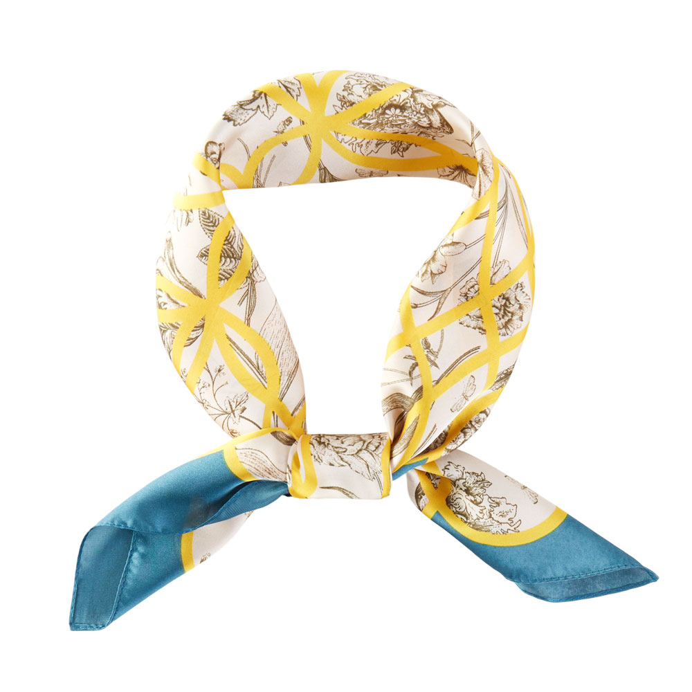 • This square scarf features an intricate overlay pattern with delicate botanical detailing, bringing a refined and artistic touch to any ensemble. Its lightweight feel makes it perfect for styling around the neck, hair, or handbag, adding a sophisticated accent to everyday and special looks.
