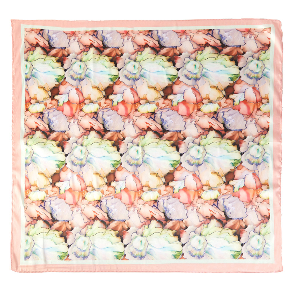 Details • Size : 27.5" X 27.5" • Material : 100% Polyester • Elevate your style with this elegant square scarf featuring a delicate floral pattern and a soft artistic design. Its versatile size allows effortless styling around the neck, hair, or handbag, adding a refined, feminine touch to both casual and dressy outfits.