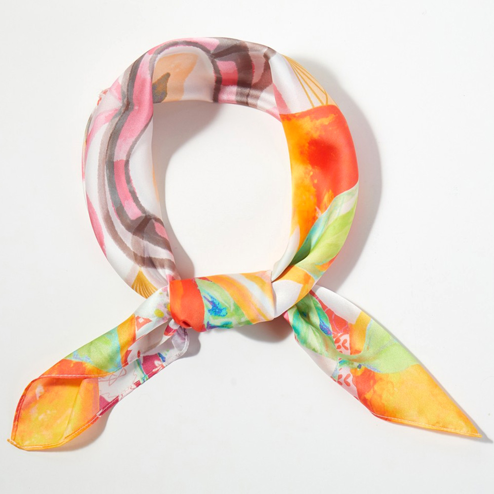 Orange Mosaic Print Square Bandana Scarf