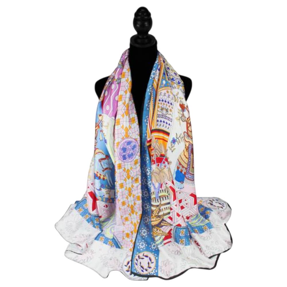 Classic Carriage Printed Oblong Silky Satin Scarf Shawl