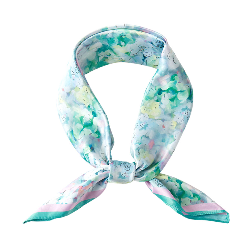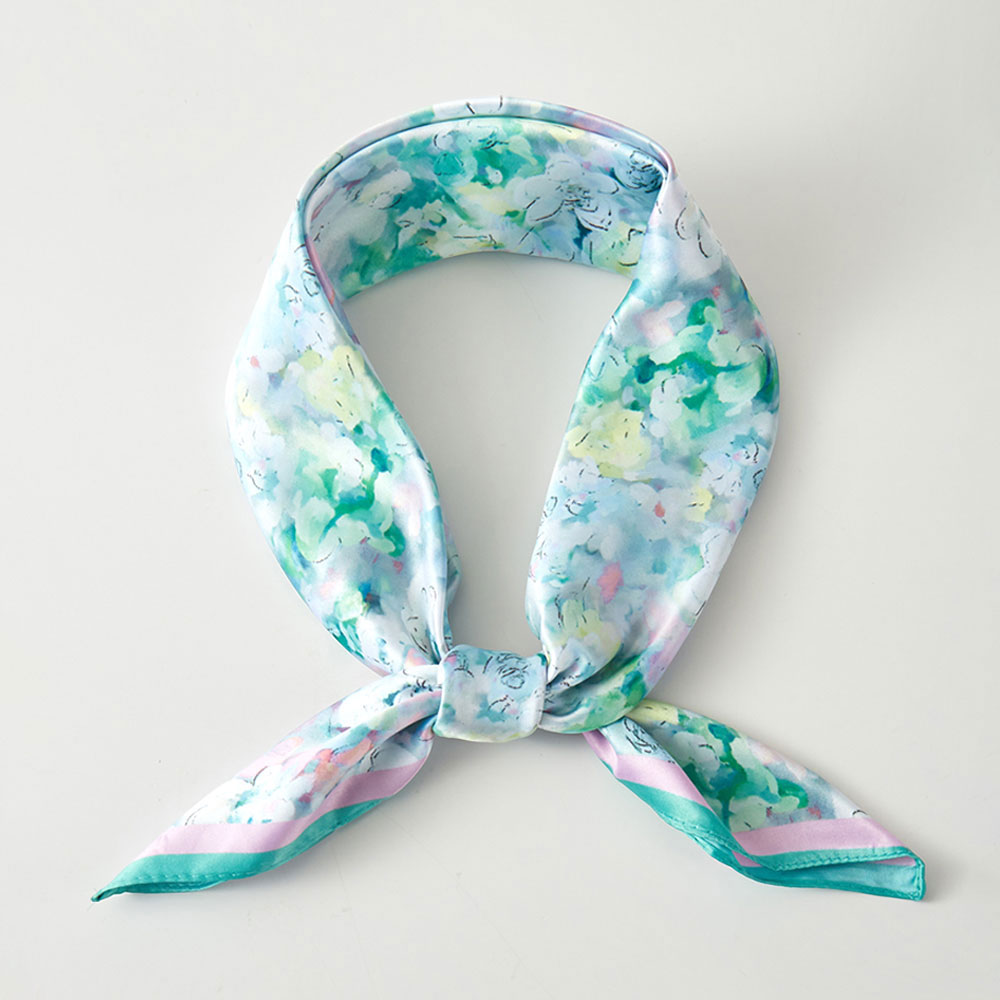 Details • Size : 27.5" X 27.5" • Material : 100% Polyester • This square scarf showcases a dreamy watercolor floral pattern that adds an elegant, artistic touch to any outfit. Its lightweight feel and versatile design make it perfect for styling as a neck scarf, hair accessory, or handbag accent, enhancing everyday looks with effortless charm.