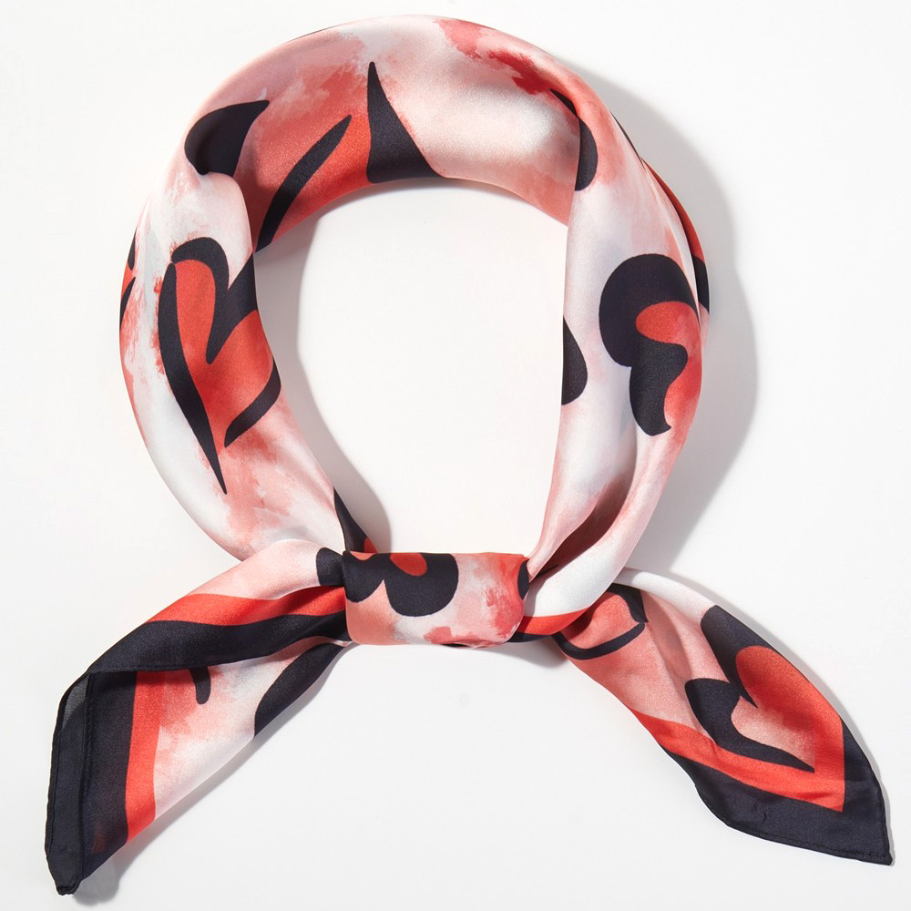 • Trendy square scarf featuring an artistic watercolor heart pattern with a bold border design. Perfect for styling on the neck, hair, wrist, or handbag. A fashionable accessory ideal for Valentine’s themes, gift assortments, boutique displays, and everyday statement looks.