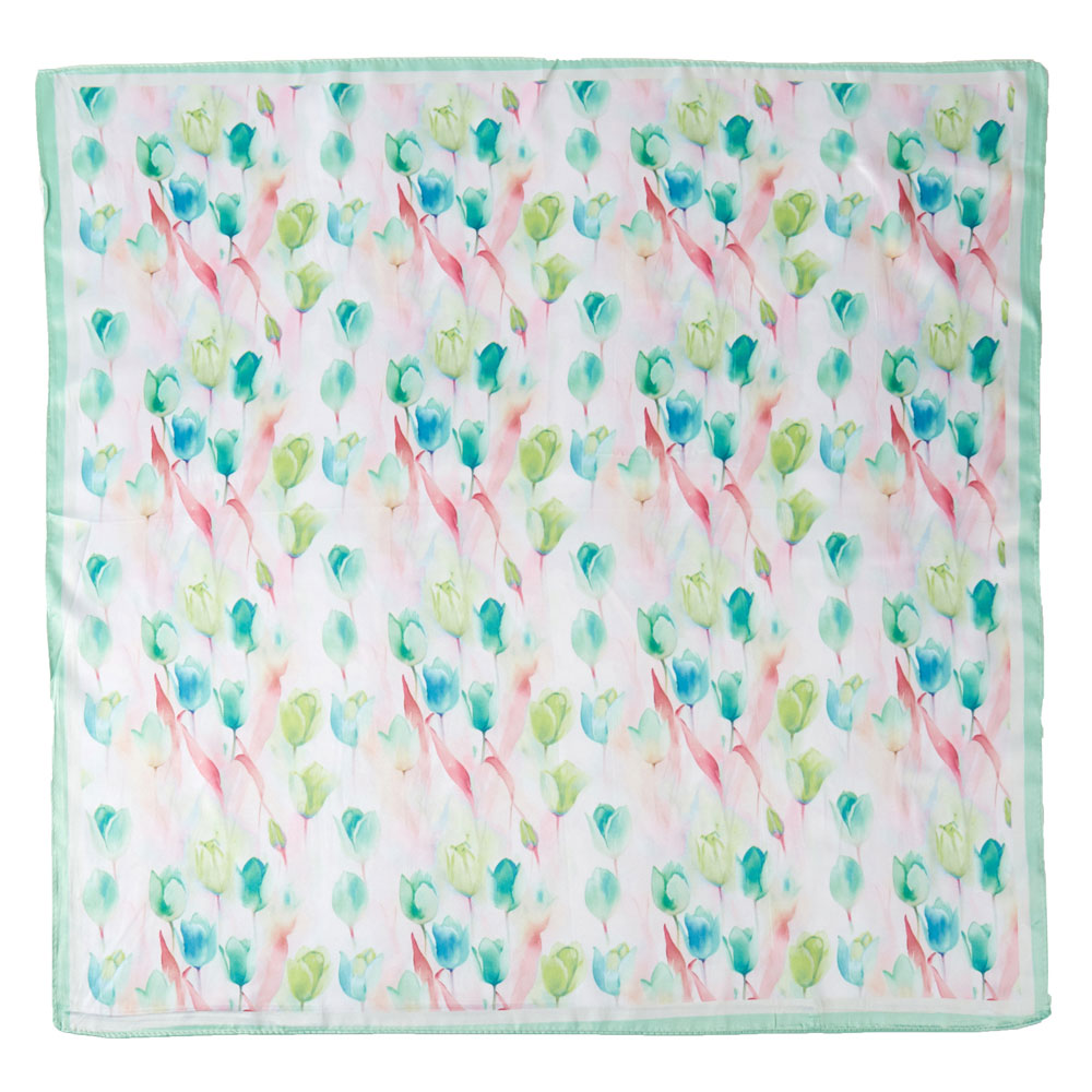 Watercolor Tulip Pattern Printed Square Silky Satin Bandana Scarf