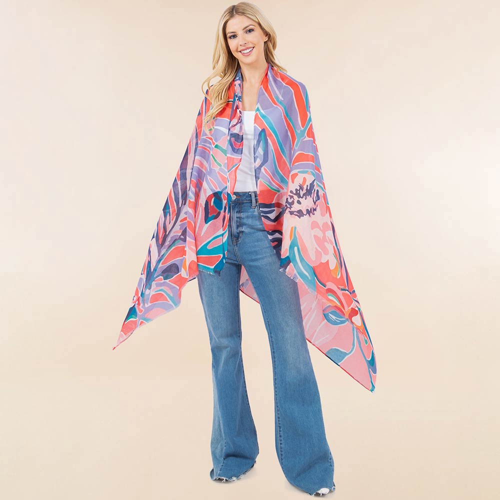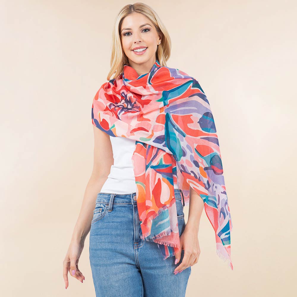Abstract Floral Pattern Print Lightweight Wrap Scarf