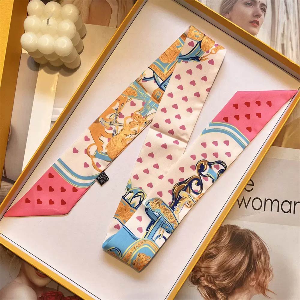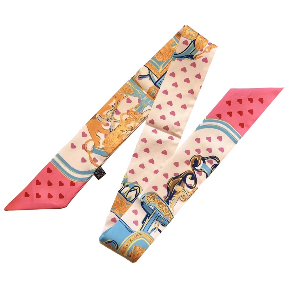 Details • Size : 2" X 35.4" • Material : 100% Polyester • This equestrian-inspired twilly scarf features an elegant saddle, strap, and buckle motif designed for versatile styling. Ideal for handbags, wrists, ponytails, or neck wear, it adds a refined accent for everyday outfits, gifting, travel styling, and boutique merchandising.